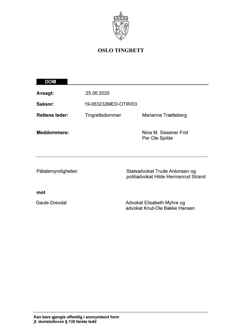 Gaute Drevdal! Gaute drevdal er dømt til ett års fengsel i borgarting lagmannsrett.